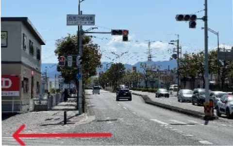 左手ジョリーパスタさんを越え、石尾中学校東交差点を府道223号線へ左折