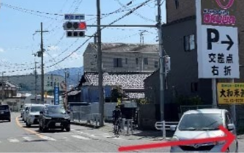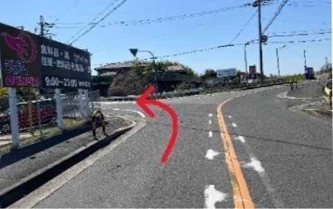 国道480号線を道なりに直進。左手に南池田小学校、右手オヤジのたまごループさんを通過し和泉納花郵便局を越え、オークワPの看板を右折